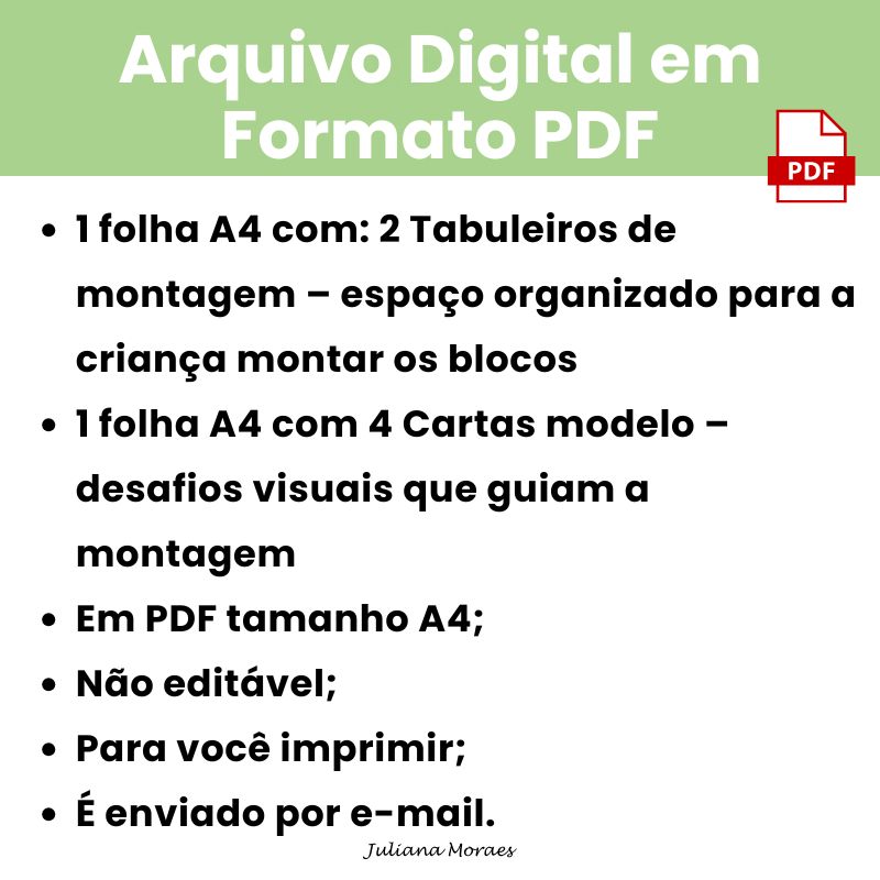 • 1 folha com as Cartas modelo – desafios visuais que guiam a montagem