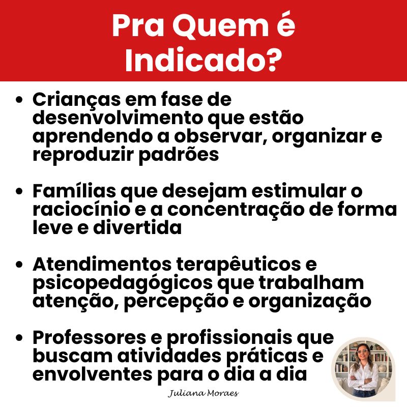 👉 Pode ser usado em casa ou em atendimentos, estimulando foco, organização e raciocínio de forma leve e envolvente