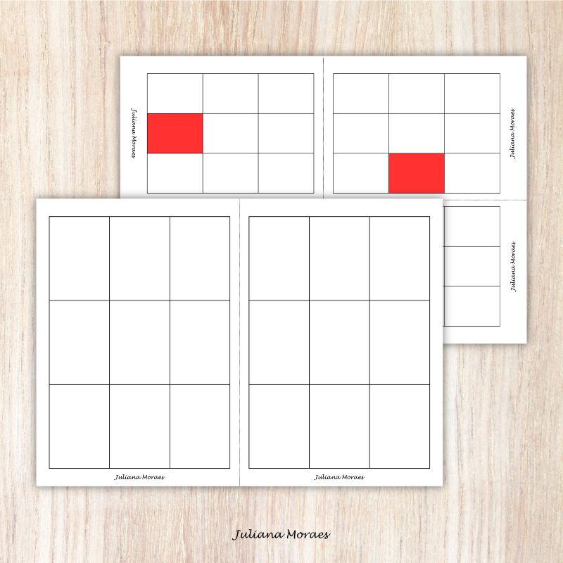 • 1 folha: 2 Tabuleiros de montagem – espaço organizado para a criança montar os blocos