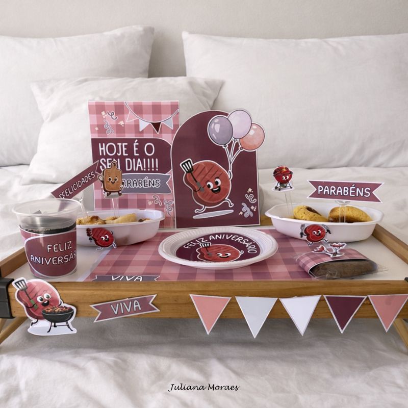 • Decoração temática e criativa: deixa a bandeja de café da manhã mais bonita, divertida e personalizada para quem ama churrasco.